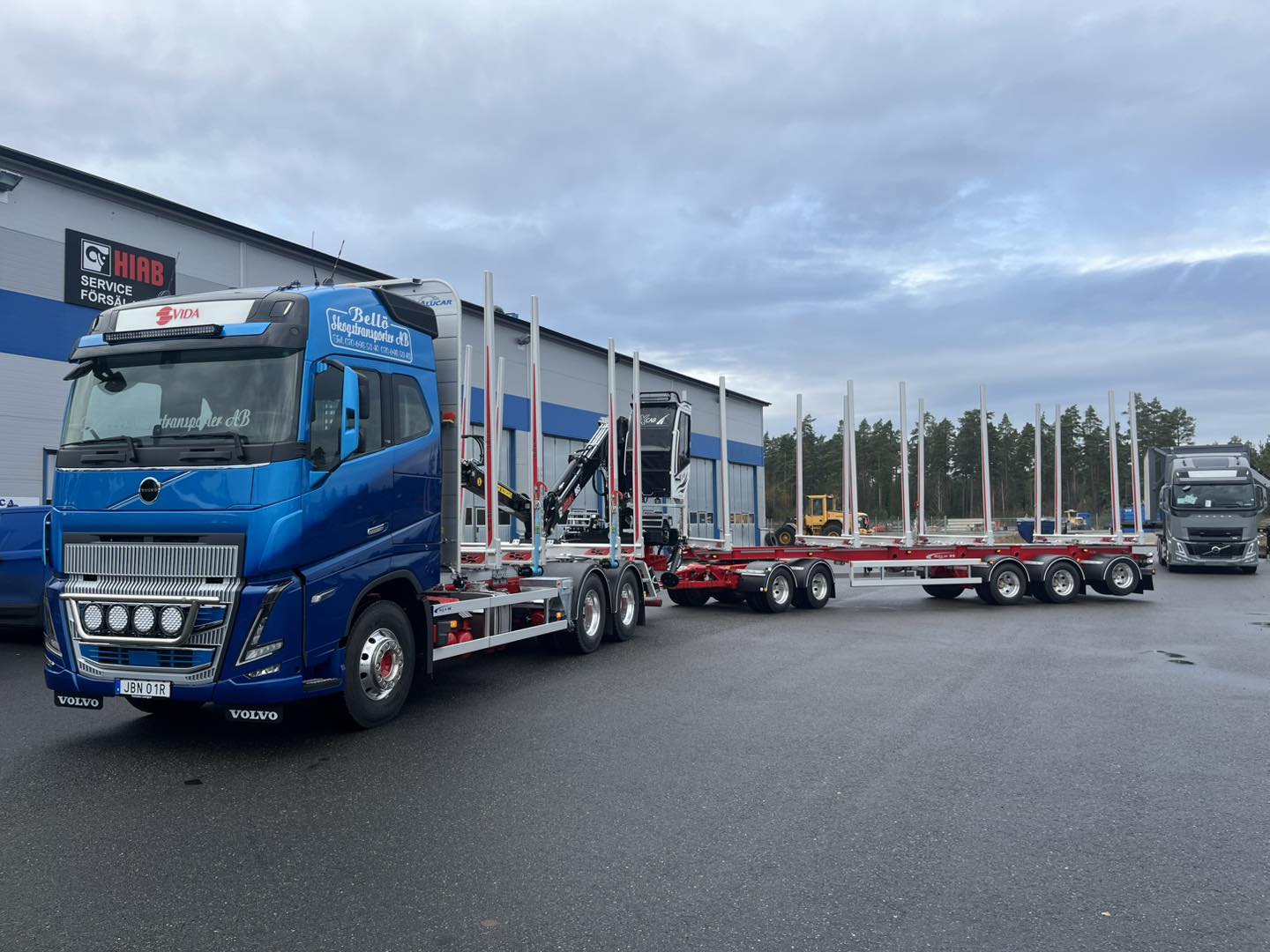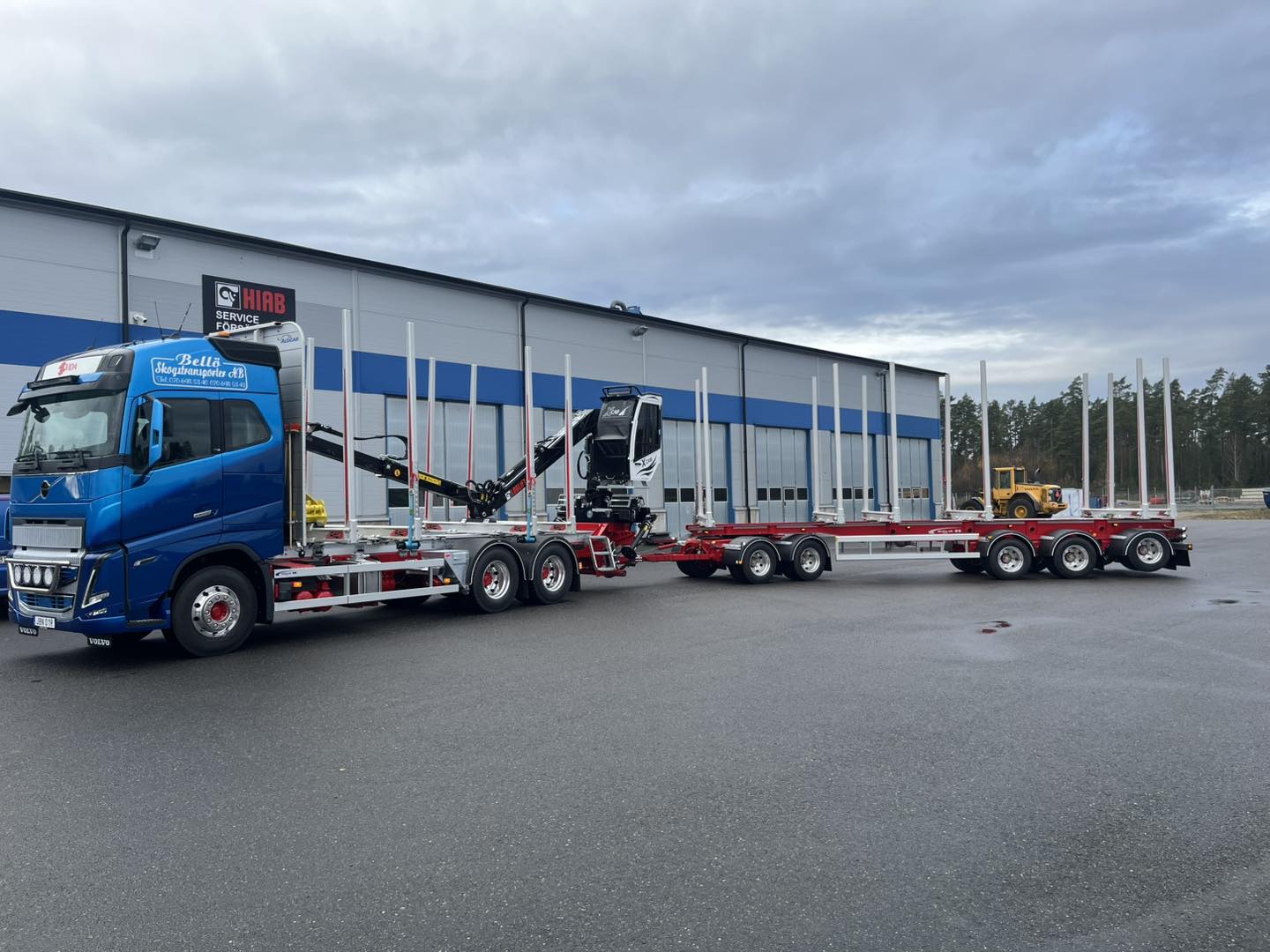 Timmerekipage, Volvo FH16 med Alucar timmerrede, Laxo LX60 bankar och Loglift 96S kran från Hiab Sverige med X-Cab 3.0 kranhytt från K-Produkter