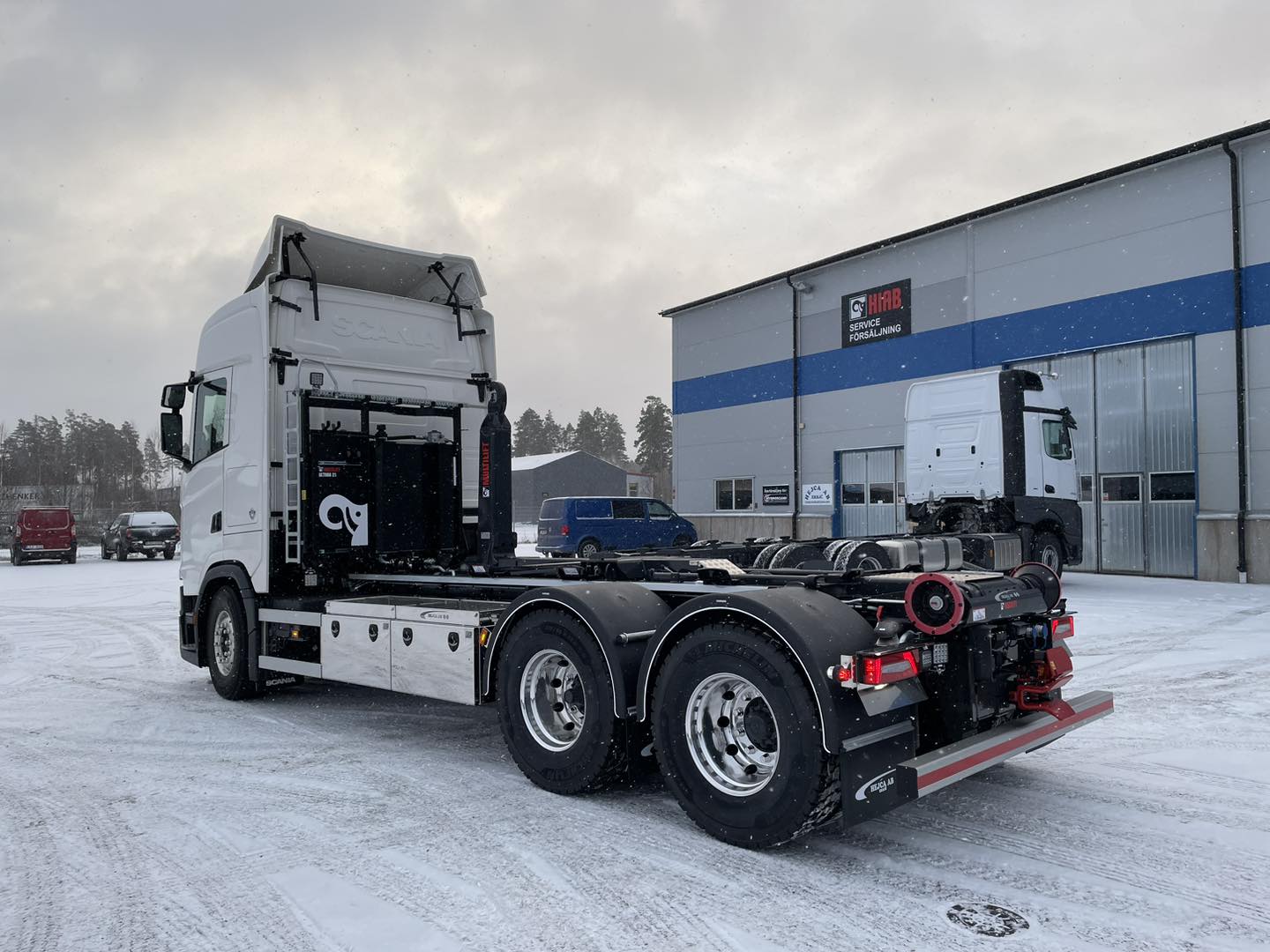Lastväxlarbyggnation på Scania S660 med Hiab Ultima 21-tons lastväxlare från Hiab Sverige utrustad med bland annat snabbkörning och snabbsänkning.