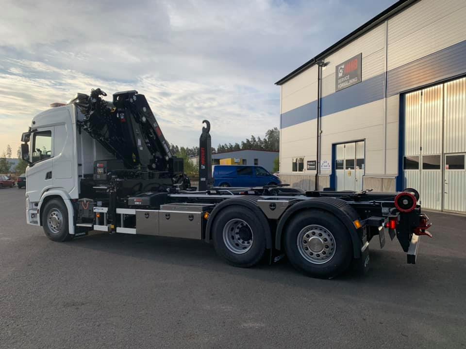 ← Alla leveranser Skriven: 2020-10-07 Frinea Transporttjänst AB Kran/Lastväxlarbyggnation på Scania G450 med Hiab Ultima 18tons lastväxlare och Hiab X-Hipro 262 kran. Levererad av Scania Sverige Stockholm.