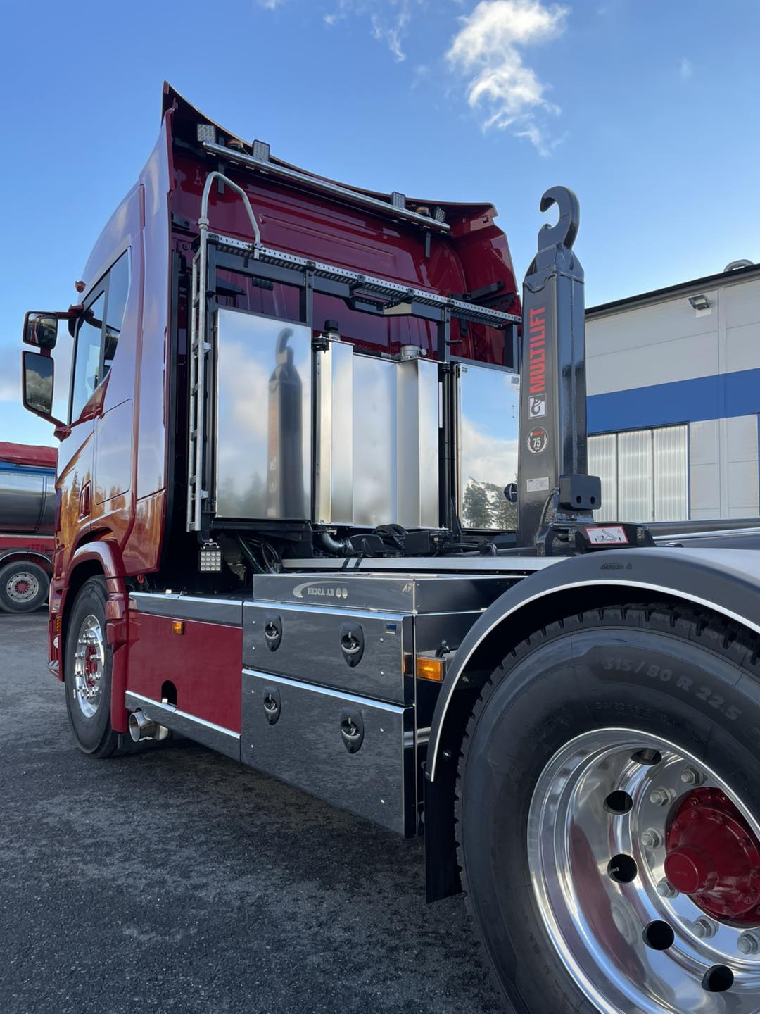 Lastväxlarbyggnation. Stilren och praktiskt utrustad Scania R590 med Hiab Ultima 24-tons lastväxlare med bland annat snabbkörning & snabbsänkning från Hiab Sverige