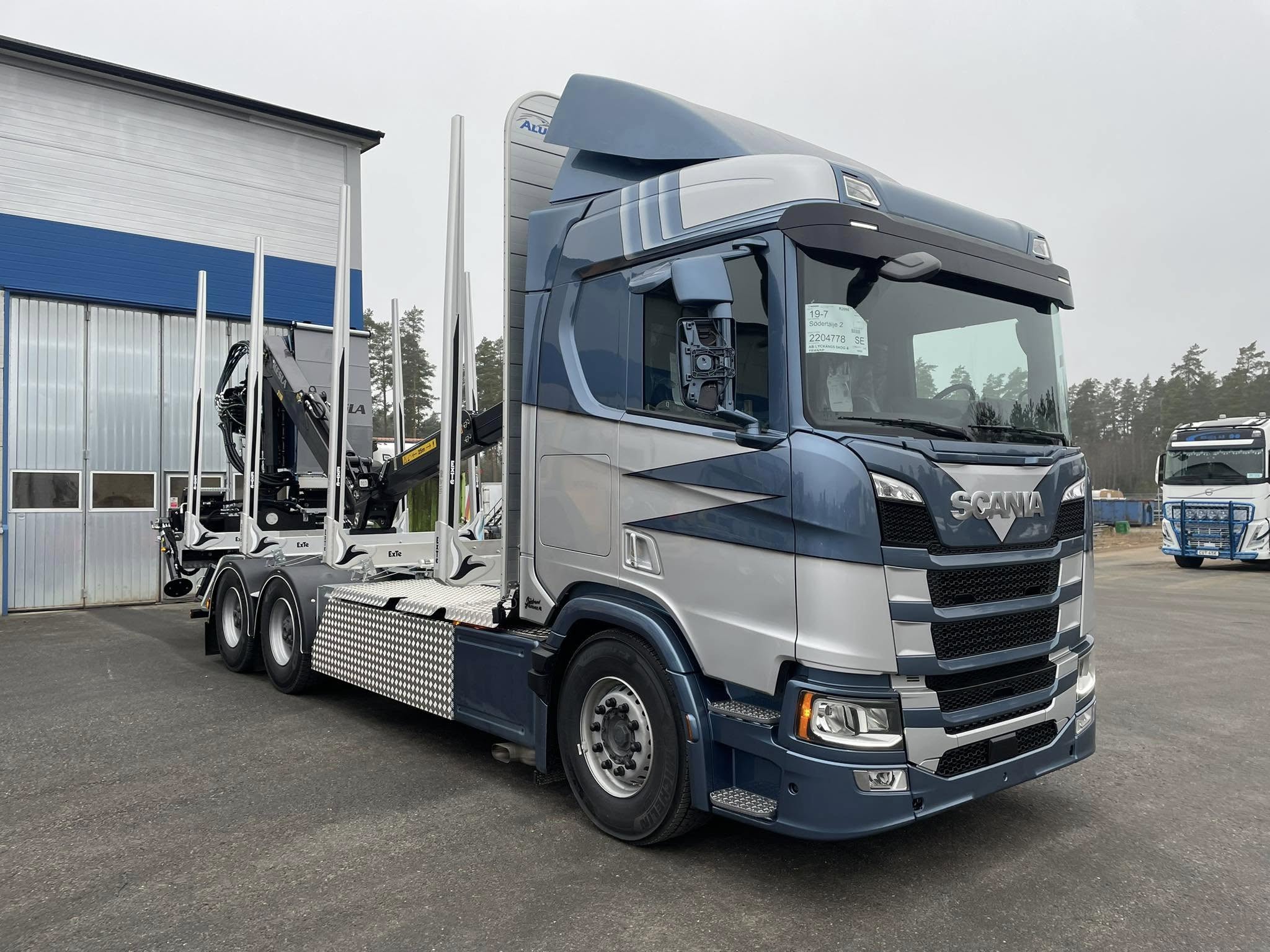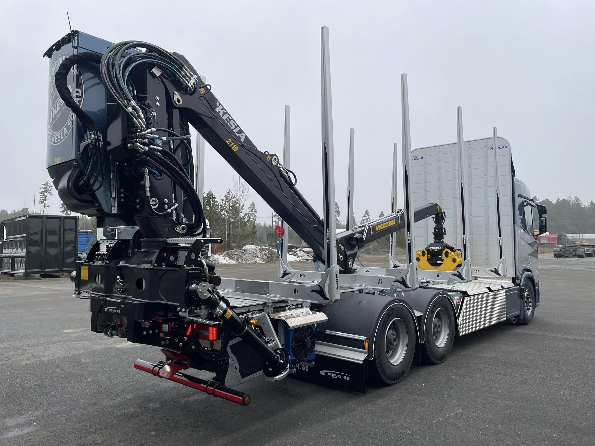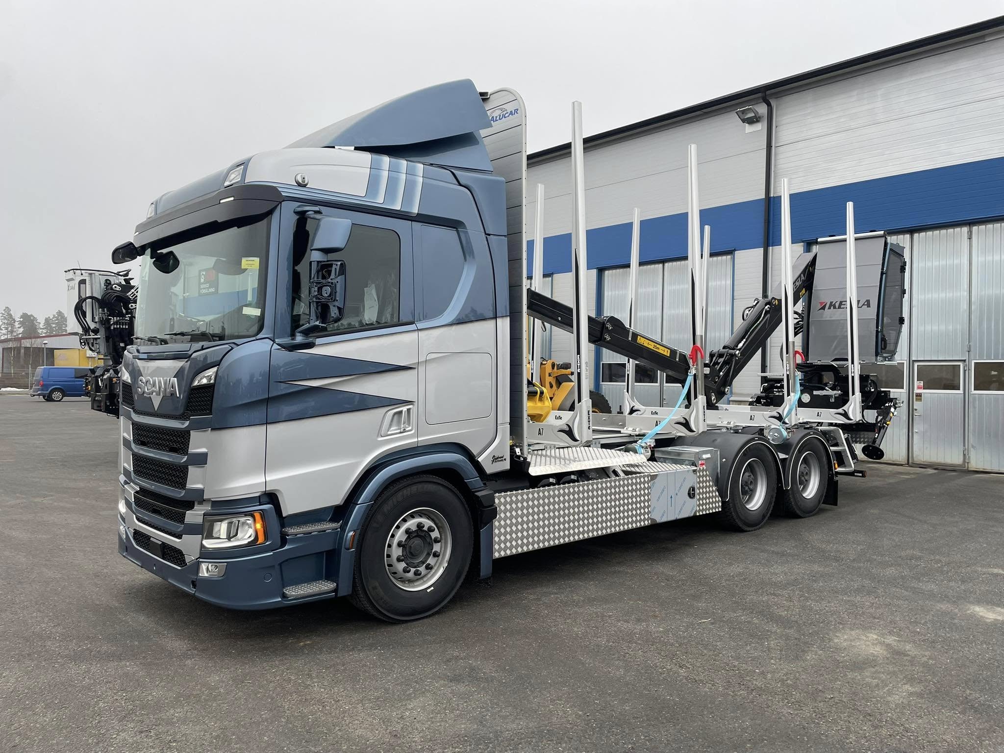 Timmerbilsbyggnation på Scania R660 med Alucar timmerrede, ExTe A7 bankar och Kesla 2110 kran. Levererad av Scania Väst i Himle