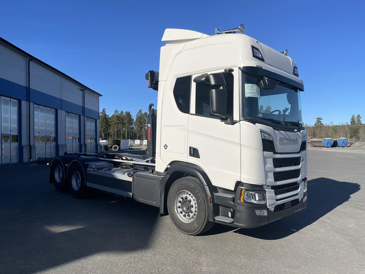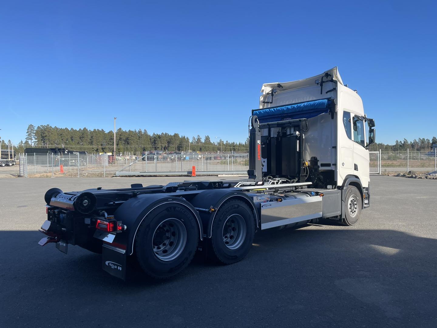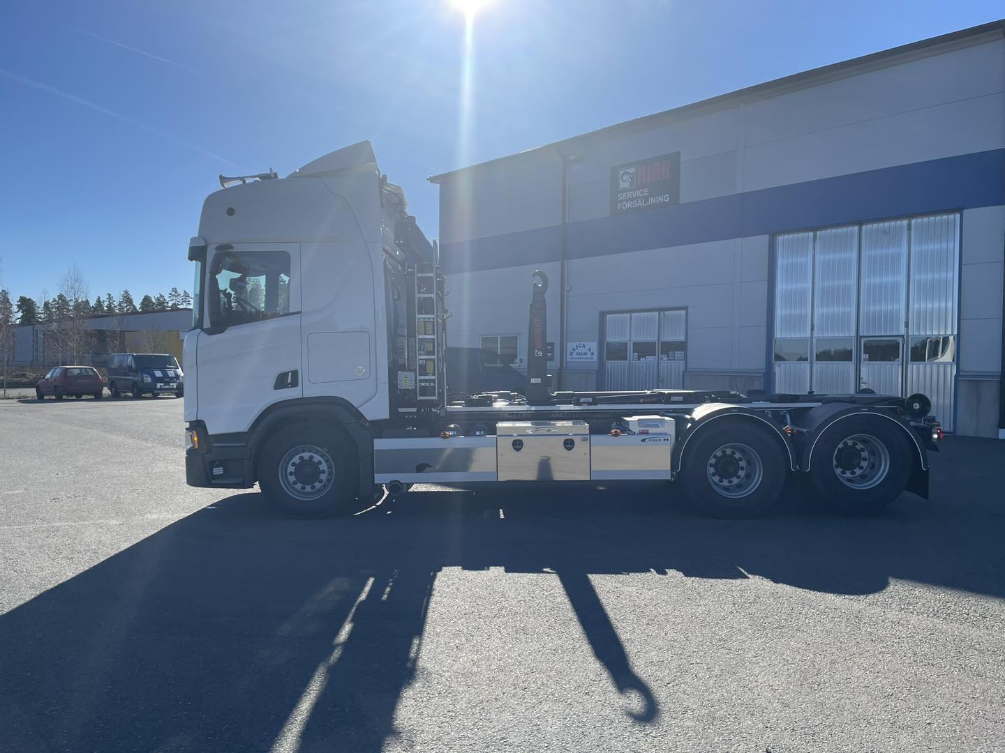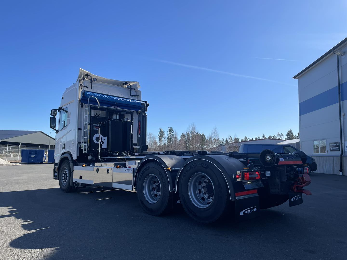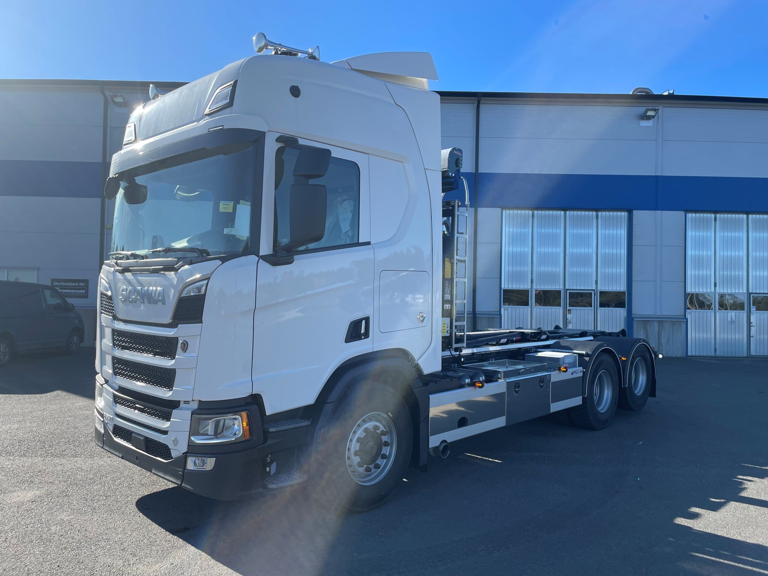 Lastväxlarbyggnation på Scania R590 med Hiab Ultima 21-tons lastväxlare från Hiab Sverige och HyCover från Ängsgårdens System AB