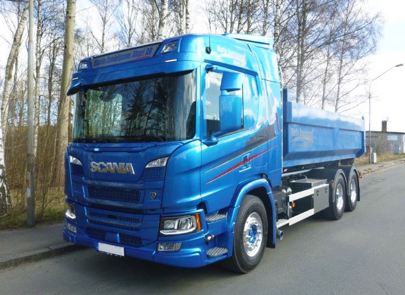 Lastväxlarbyggnation på Ny Scania P500 6×4 med en HIAB Lastväxlare.