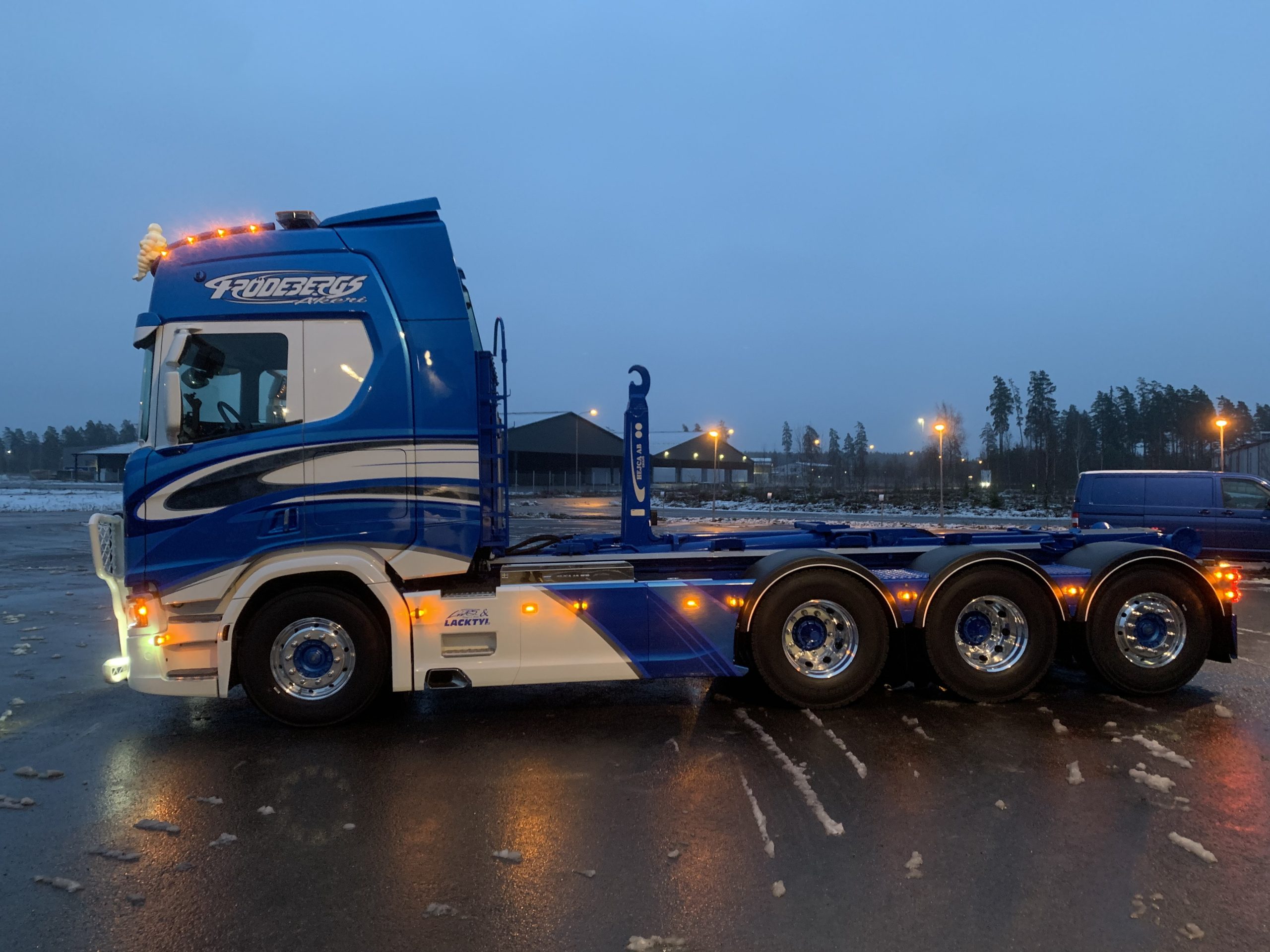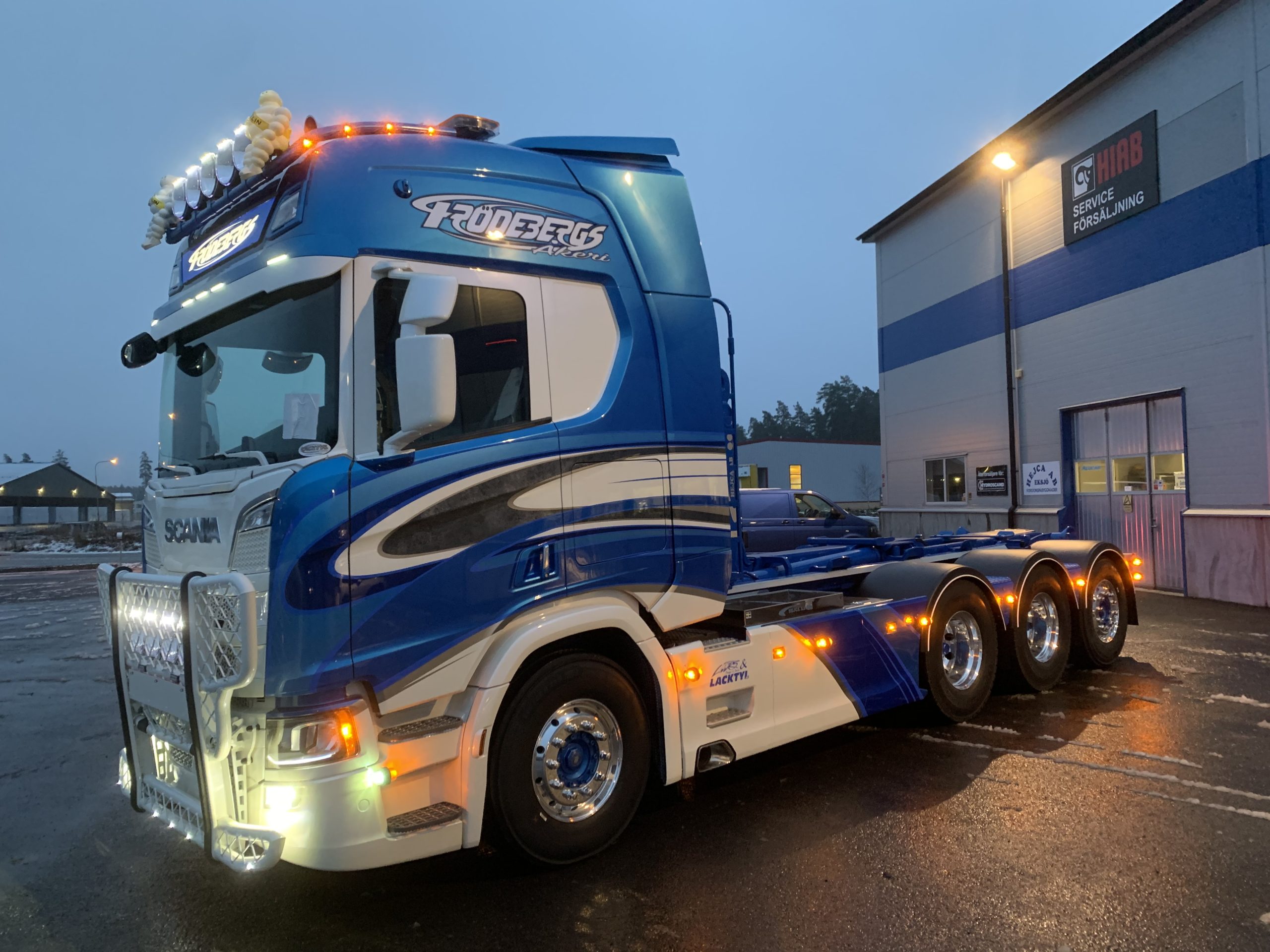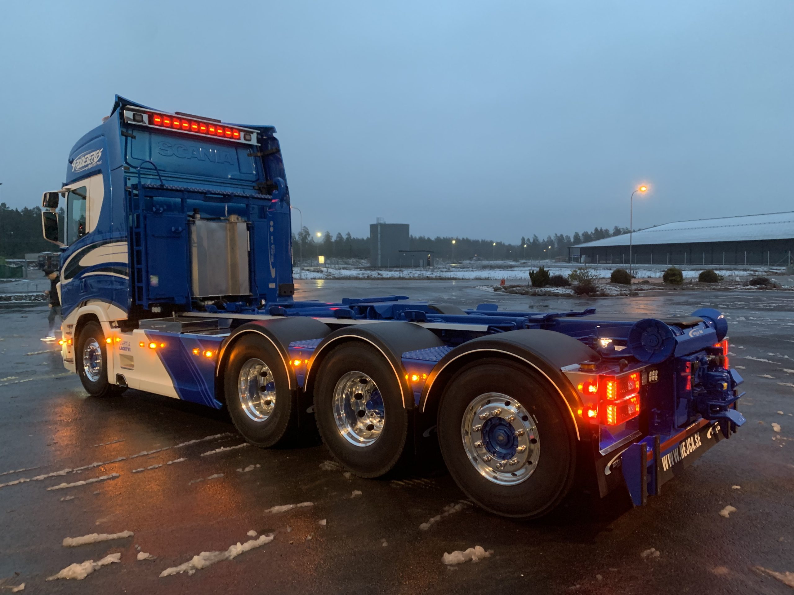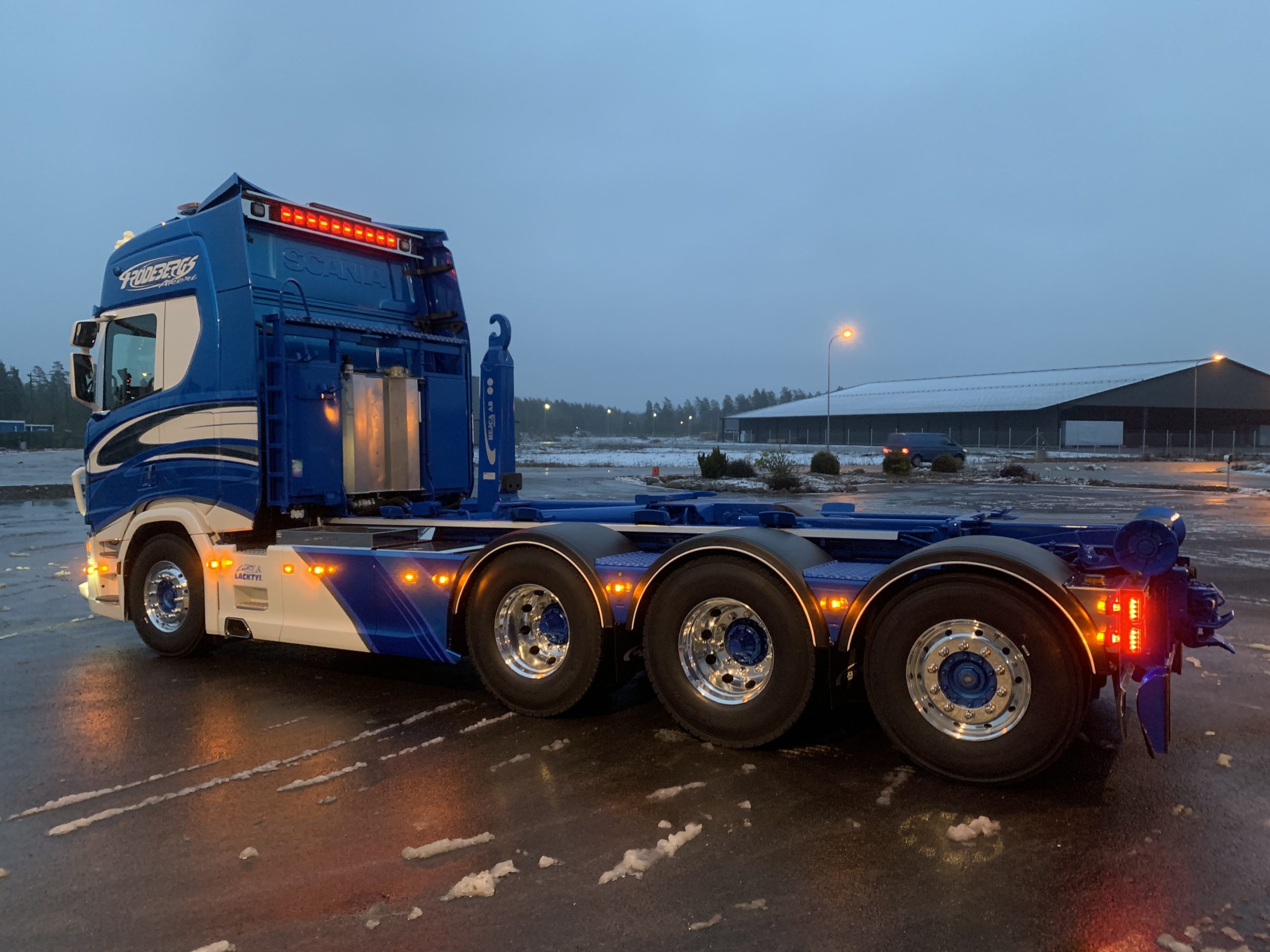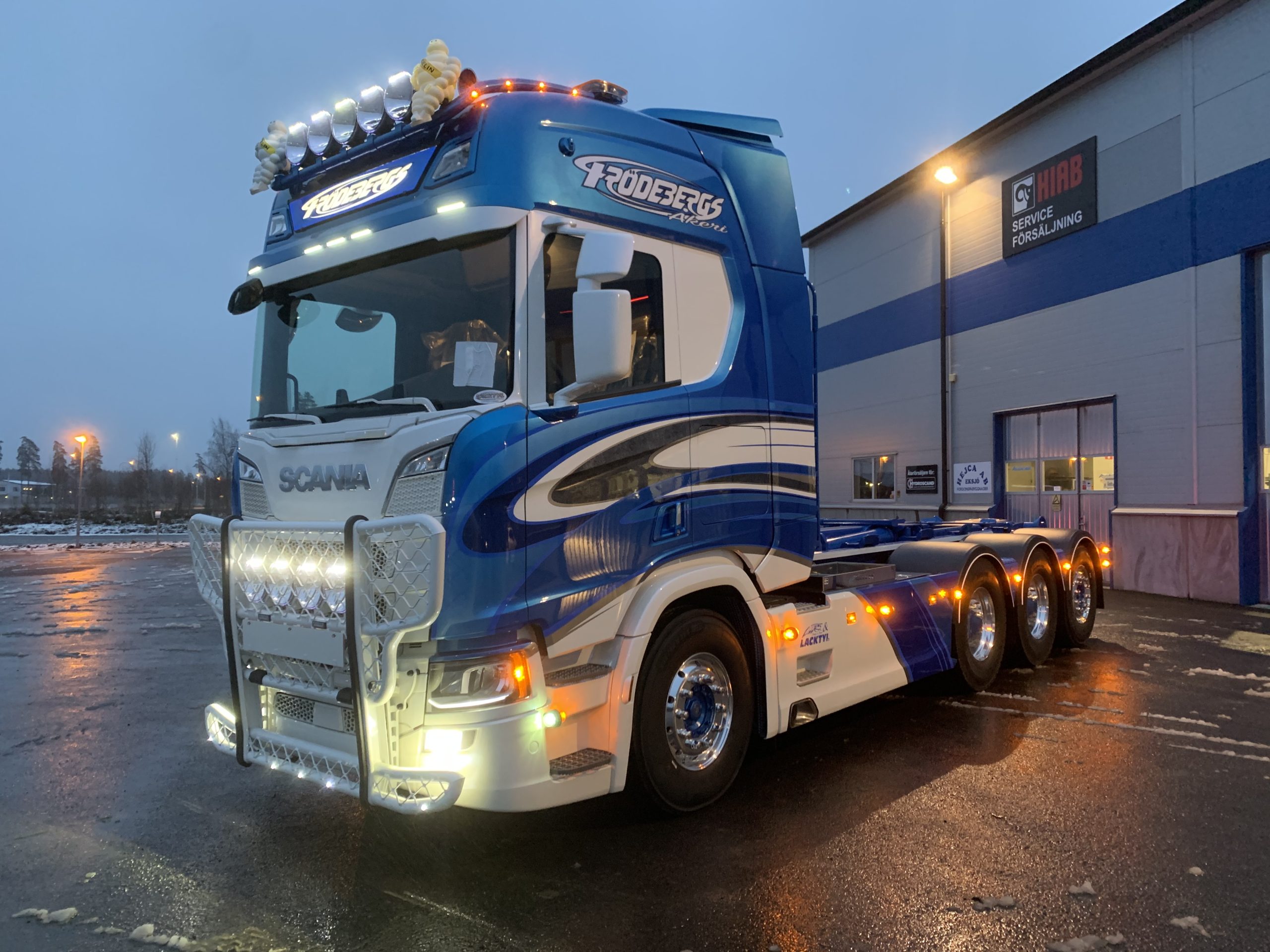← Alla leveranser Skriven: 2020-03-29 PG Frödebergs Åkeri AB Scania R 650 8×4*4 med en HIAB Lastväxlare.