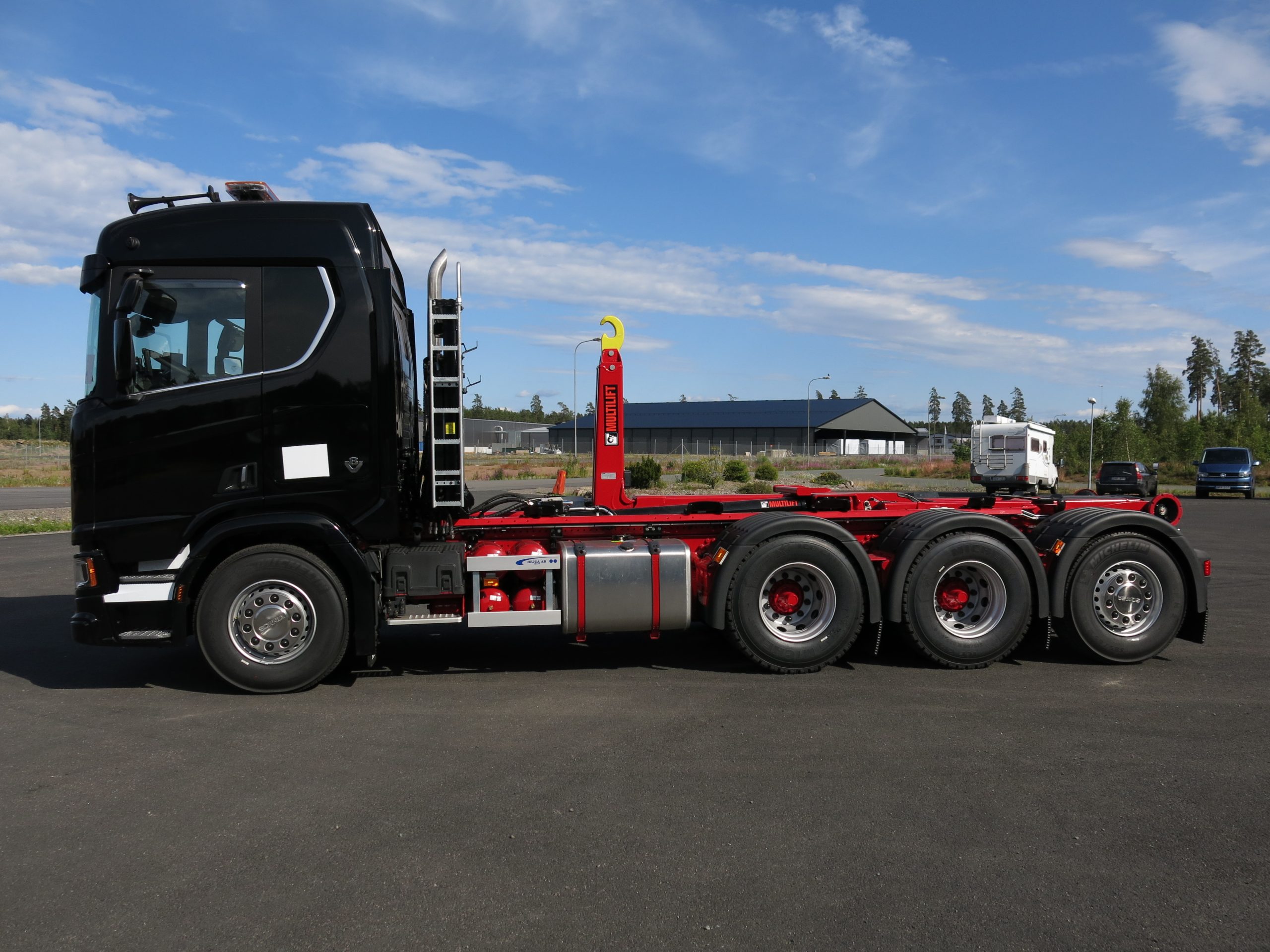← Alla leveranser Skriven: 2019-08-23 WAHLSTEDTS BIL AB I MOTALA Lastväxlarbyggnation på ny Scania R520 med Hiab Ultima 26 tons lastväxlare.